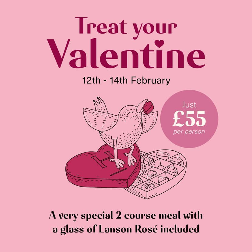 Celebrate Valentine’s at The Sun Inn with our indulgent 2 course set menu, featuring beautifully crafted dishes and a glass of Lanson Rosé for just £55 per person.