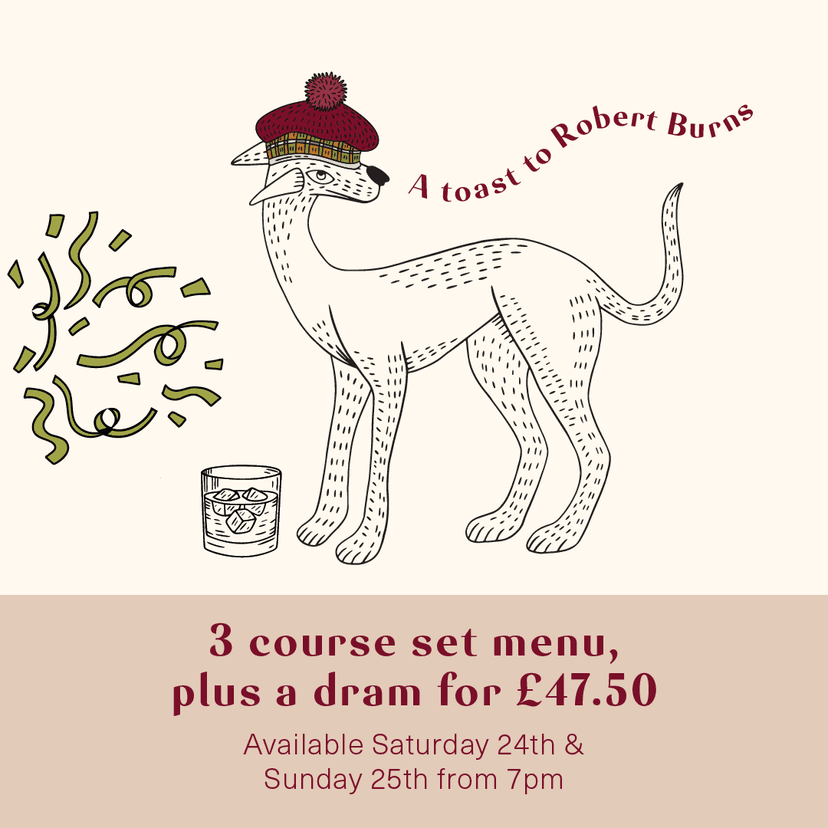 And join us for live bagpipes from 7pm on Saturday 24th January to help celebrate the evening. Slàinte!
